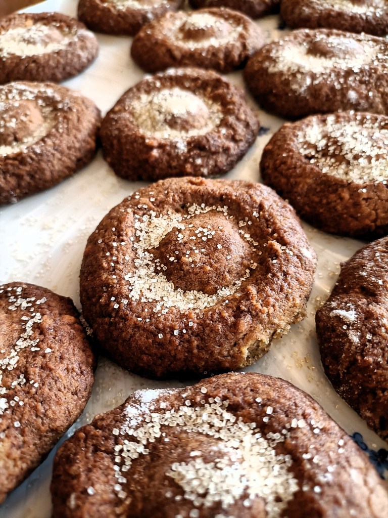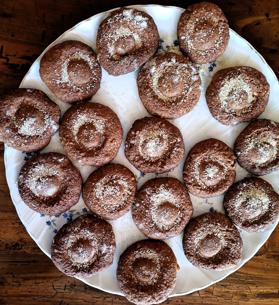 Dopo il riposo, forma delle palline che appiattirai posandole sulla leccarda del forno alla quale avrai messo un foglio di carta forno.